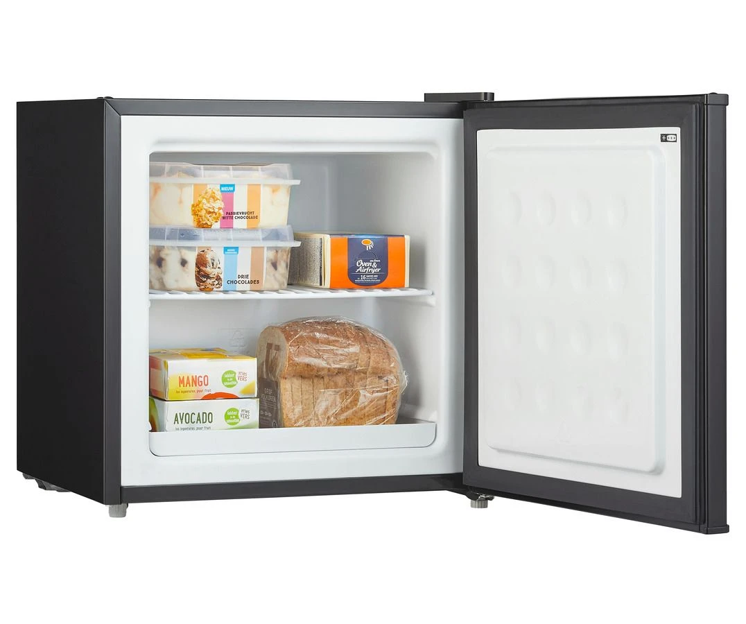 Deze zwarte mini vriezer is ruimtebesparend met een inhoud van 31 liter, waarmee je kleine etenswaren invriest. Door zijn afmetingen is hij zeer geschikt voor kleine appartementen, kantoren of studentenkamers. Aan de binnenkant van de mini vriezer zitten twee grote aparte vakken waar je van alles kunt invriezen. Eén van de voordelen van deze mini vriezer is dat hij gemakkelijk op bijvoorbeeld een kast, koelkast of bar geplaatst kan worden.