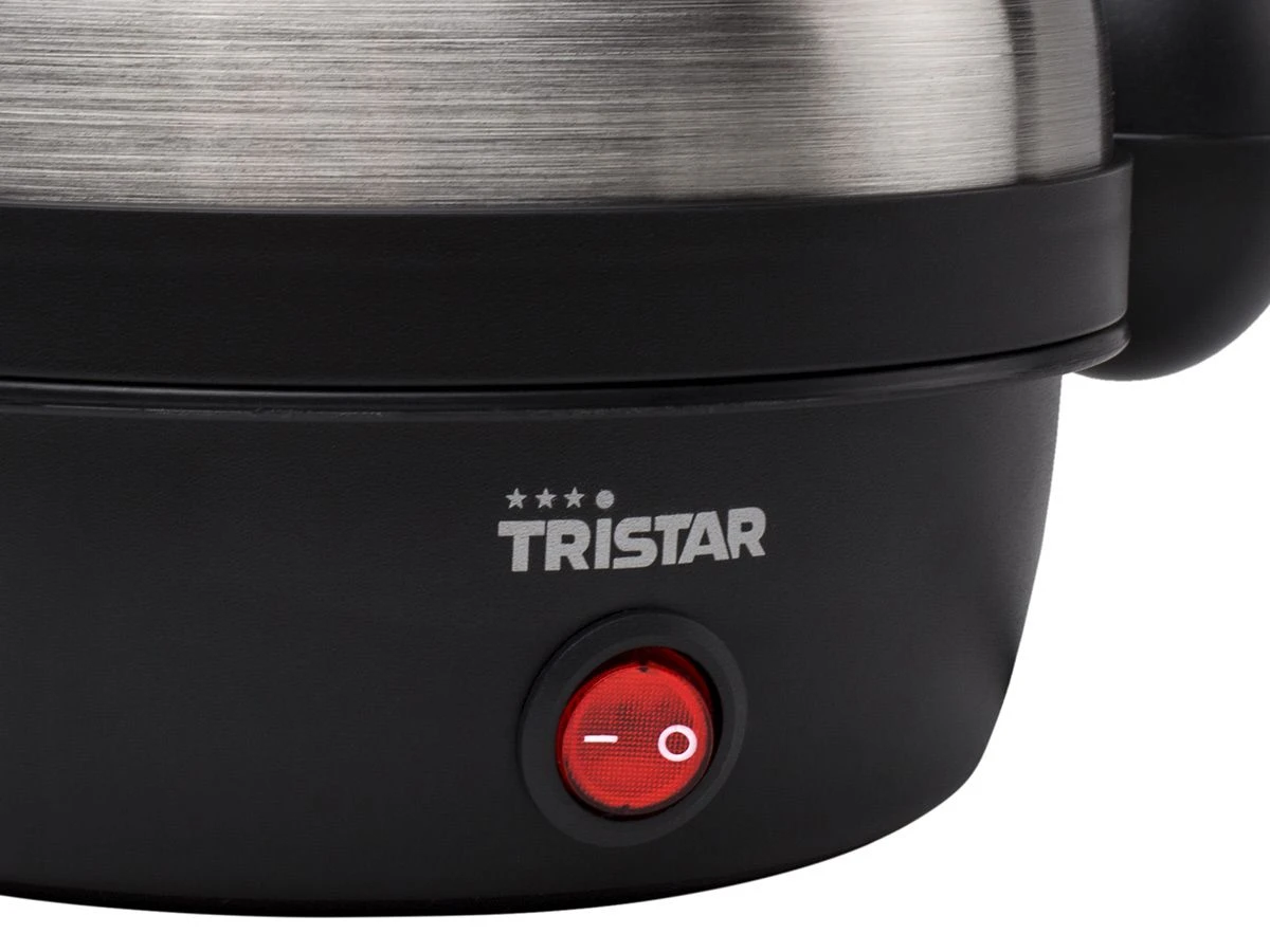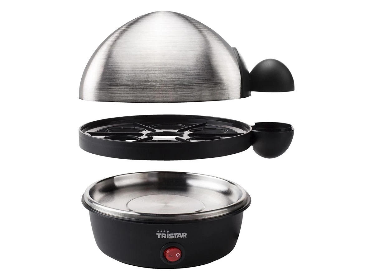 De Tristar EK-3076 eierkoker werkt heel simpel. Vul de eierkoker met het gewenste aantal eieren. Aan de onderkant van de meegeleverde maatbeker zit een eierprikker waarmee je aan de stompe kant van het ei een gaatje kunt prikken. Dit zorgt ervoor dat het ei minder snel barst.