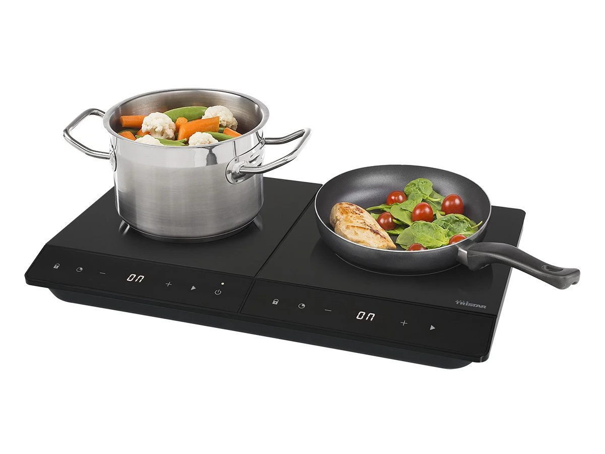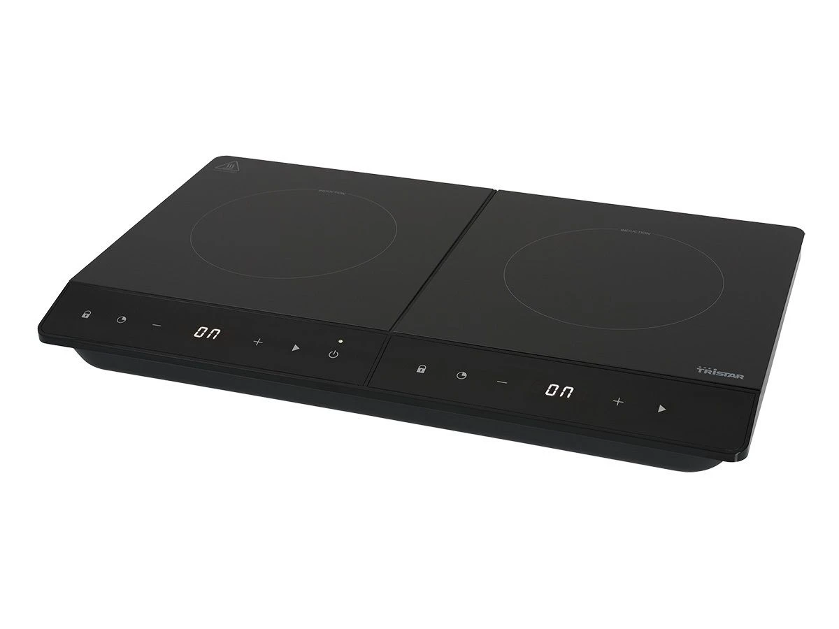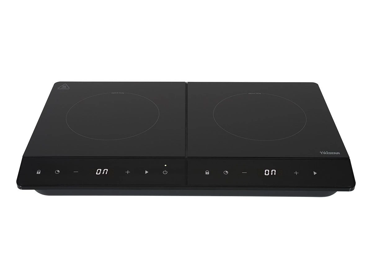 De Tristar IK-6162 is een dubbele inductiekookplaat die stijl, efficiëntie en veiligheid combineert, ideaal voor gebruik in verschillende settings, zoals thuis of op de camping. Met een totaal vermogen van 3500 watt (2000 watt voor de ene zone en 1500 watt voor de andere) warmt de kookplaat snel op en biedt hij flexibele kookmogelijkheden dankzij twee kookzones met diameters van 19 en 16 cm.