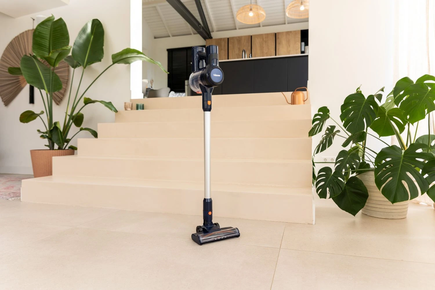 Dankzij een stofzak van 800 ml kun je langer schoonmaken zonder de bak te hoeven legen. De bijgeleverde HEPA-filter vangt allergenen en stofdeeltjes op, zodat de lucht in je huis schoon en fris blijft. Verlicht je schoonmaakpad met de ingebouwde LED-verlichting op de borstel. Het onthult verborgen vuil en zorgt ervoor dat geen enkele vlek wordt gemist, zelfs niet in slecht verlichte ruimtes. Deze draadloze stofzuiger biedt twee zuigsnelheden, zodat je de zuigkracht kunt aanpassen aan je schoonmaakbehoeften. Met een geluidsniveau van slechts 75 dB kun je stofzuigen zonder de rust in huis te verstoren.