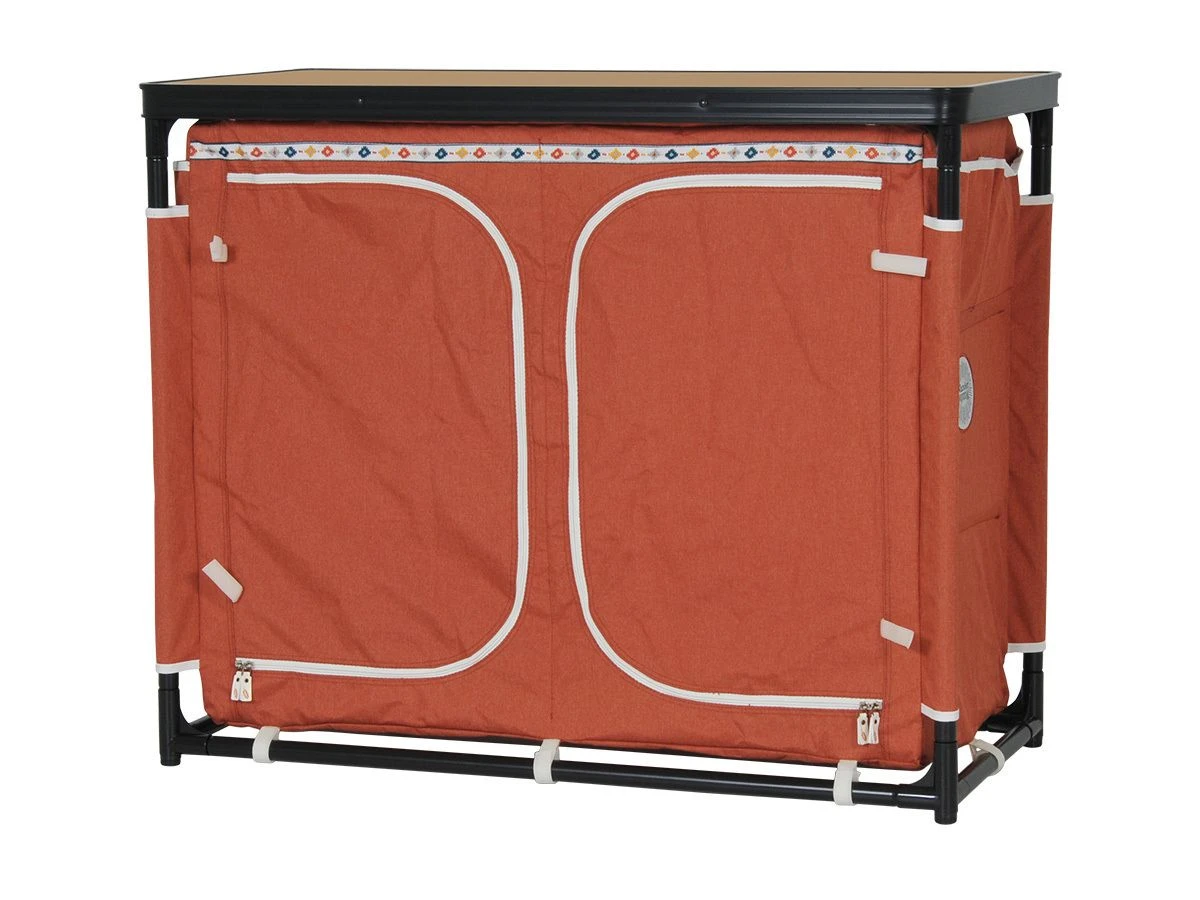 Na je vakantie is de kast eenvoudig uit elkaar te halen en compact op te bergen in de meegeleverde draagtas.