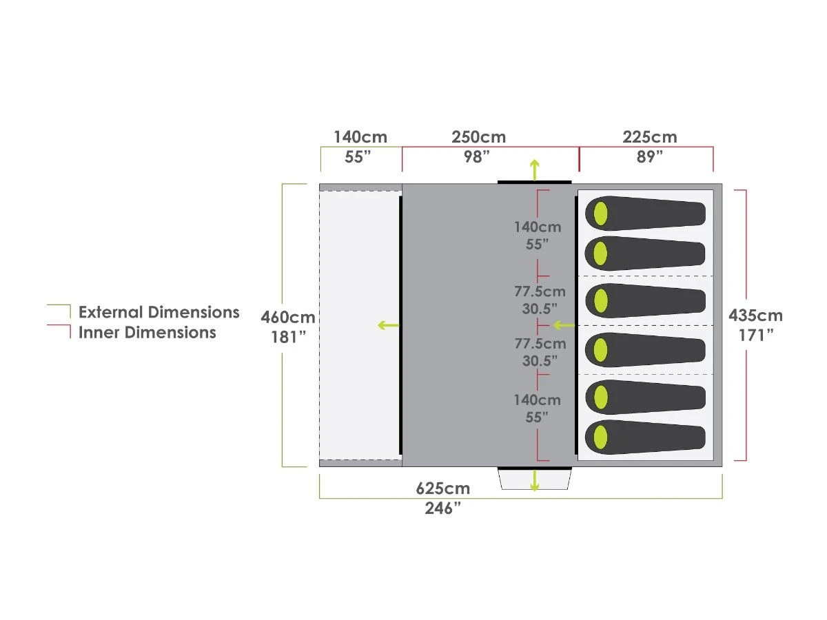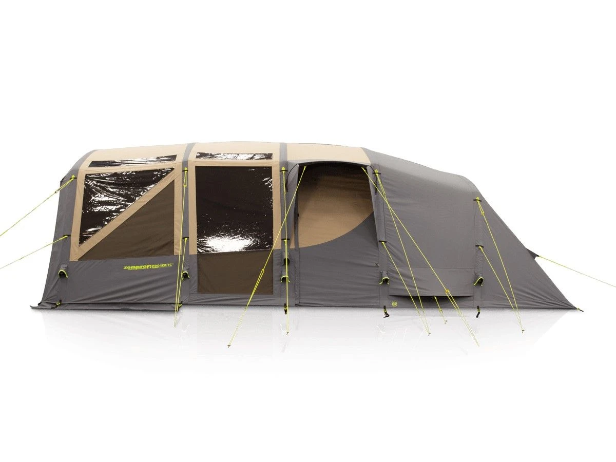 De Zempire Pro TXL TC V2 is Zempires grootste polyesterkatoenen tent. Het ademde polyesterkatoen creeert een plezierige leefomgeving en voorkomt condensatie. De Pro TXL TC bied u een uitstekende balans in ruimet en rust. 6 comfortabele slaapplaatsen ( 8 met de optionele extra slaapcabine*) is het de ultieme optie voor een grote familie die een kwalitatieve kampeerervaring in een huiselijke omgeving. Het eenpunts opblaas syteem zorgt ervoor dat u deze tent eenvoudig en snel kunt opzetten. De nieuw toegevoegde getinte skylights geven u meer licht en meer ruimte gevoel in de tent met behoud van de privacy.De multifuctionele slaapcabins kunnen naar wens in diverse lay outsworden aangepast. Wij garanderen dat u van de ruimte en kenmerken van deze grote air tent gaat houden. * 8 slaapplekken met de extra optionele slaapcabine